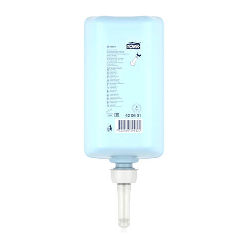 S1 rendszerű adagolóba, kellemes illattal, öko-címkével rendelkezik, hajmosásra és tusolásra is, kb. 1000 kézmosásra elegendő az 1 liter, 6x1 liter/karton. A hotelek, iskolák és sportlétesítmények számára készült Tork krémszappan tusoláshoz egy ápoló és hidratáló hatású krémszappan friss, uniszex illattal, amely puhává varázsolja a bőrt. A Tork folyékony és spray szappan adagolókkal együtt használható, használata tanúsítottan egyszerű, és minden felhasználó számára megfelelő kézhigiéniát biztosít. Frissítő, uniszex illattú krémszappan tusoláshoz. Még kellemesebb élmény: Bőrkímélő, gyöngyházfényű készítmény. Bőrgyógyászatilag tesztelt. Bőrbarát pH. Kisebb időráfordítás a takarító személyzet tagjainak: Tanúsítottan könnyű utántöltés* kevesebb mint 10 másodperc alatt**. Elősegíti a megfelelő szintű higiénia biztosítását: Gyárilag zárt rendszerű flakon új pumpával minden utántöltéshez, így csökken a fertőzés kockázata, és maximális higiénia biztosítható a gyártósortól a felhasználókig. Hulladékcsökkentés: A flakon zsugorodik, így akár 70%-kal kevesebb hulladék keletkezik*.