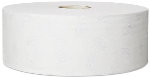 T1 rendszer, 2 rétegű tissue, extra fehér, prégelt, kék levélmintával, 6x360 méter/karton, szélesség: 9,7 cm, Ecolabel címkével ellátott, lapméret: 9,7 x 20 cm, 1.800 lap/tekercs, tekercsátmérő: 26 cm